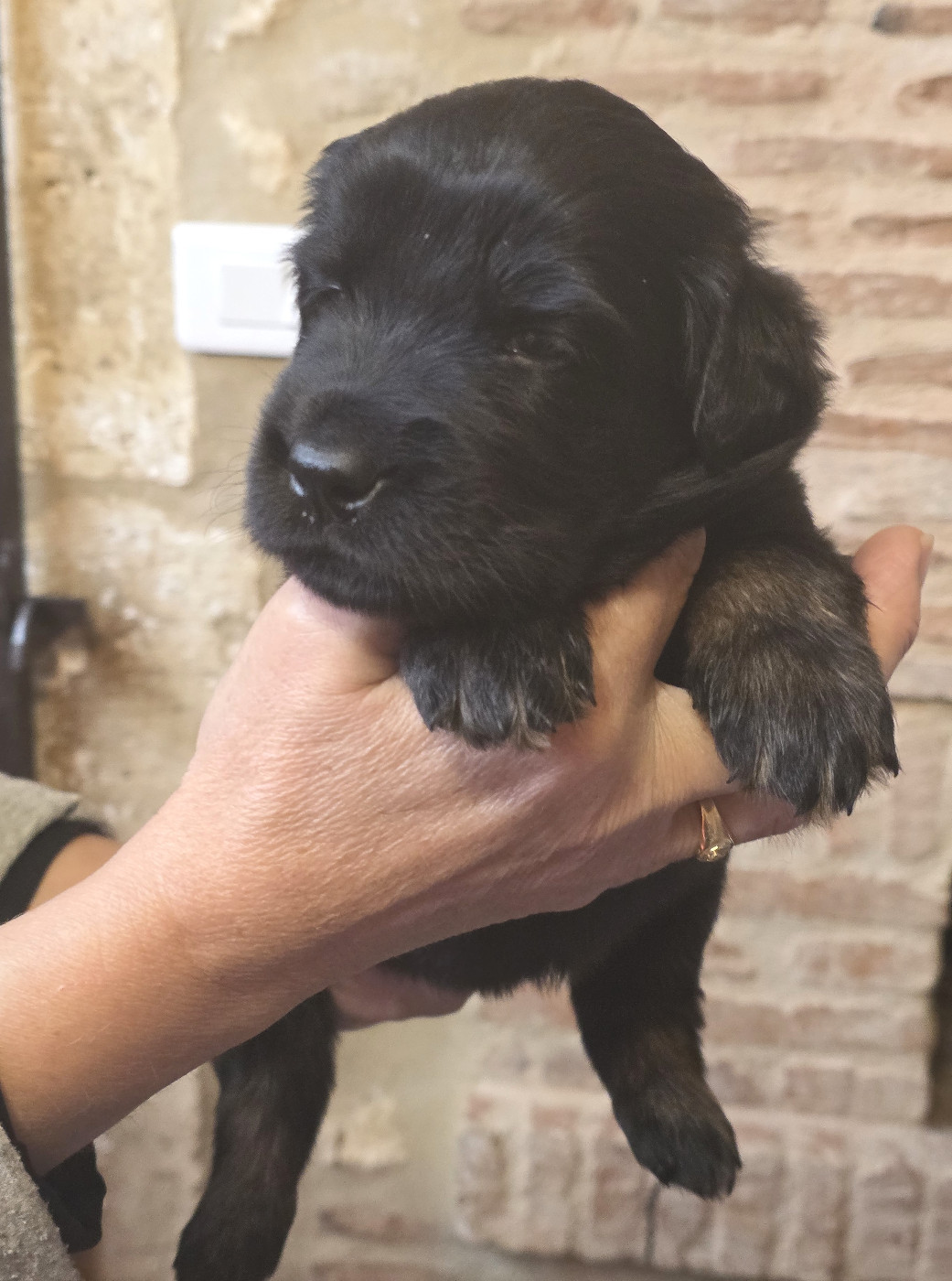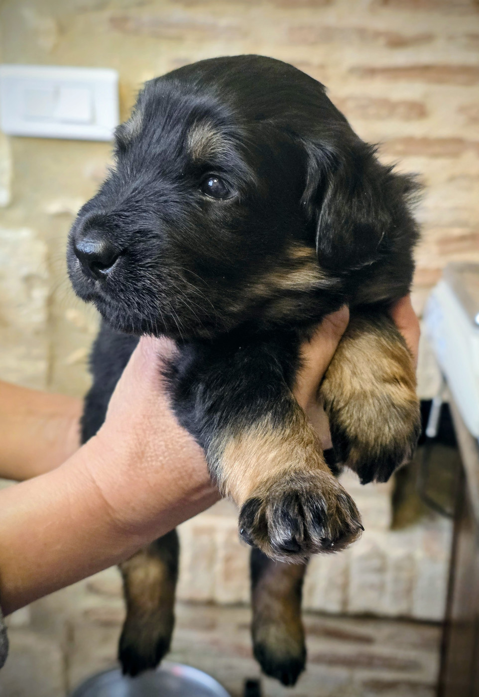 maman Phèdre des Leus Altiers (Bacley vom Ilsesee x Moira des Leus Altiers), HD-A, indemne de tares oculaires, DM N/N, ADN, CSAU, TAN, Brevet de Recherche Utilitaire, Champion de France de Conformité au Standard sont heureux de vous annoncer la naissance de leurs 7 bébés le 20/11/2025 : 1 mâle noir, 1 mâle noir marqué fauve, 3 femelles noires, 2 femelles noir marqué fauve